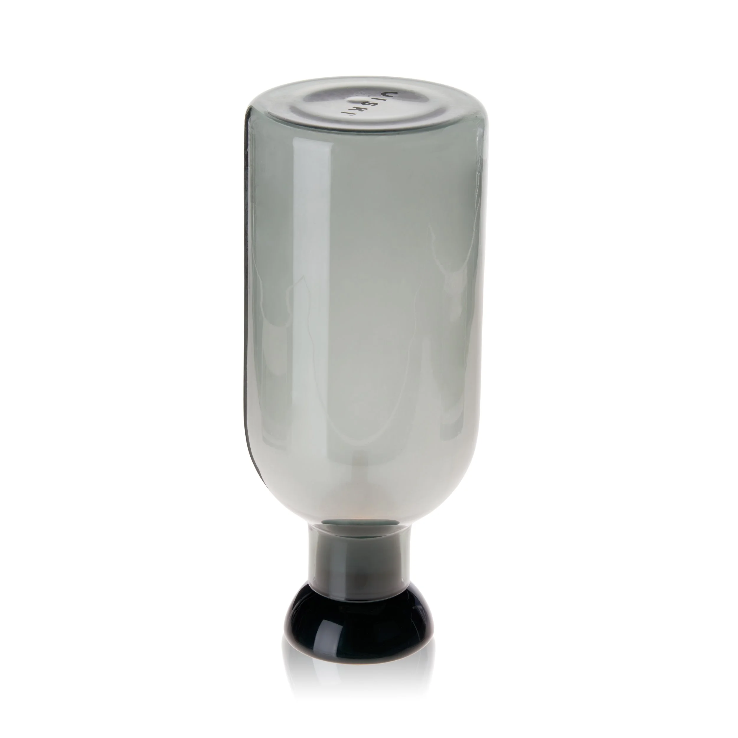 Custom glass bottle with a lid that holds a standard barbecue smoker pellet, allowing the user to quickly fill the bottle with smoke while upside down, and then swirl the smoke together with a cocktail of choice while retaining the smoke in the bottle with a silicone stopper
